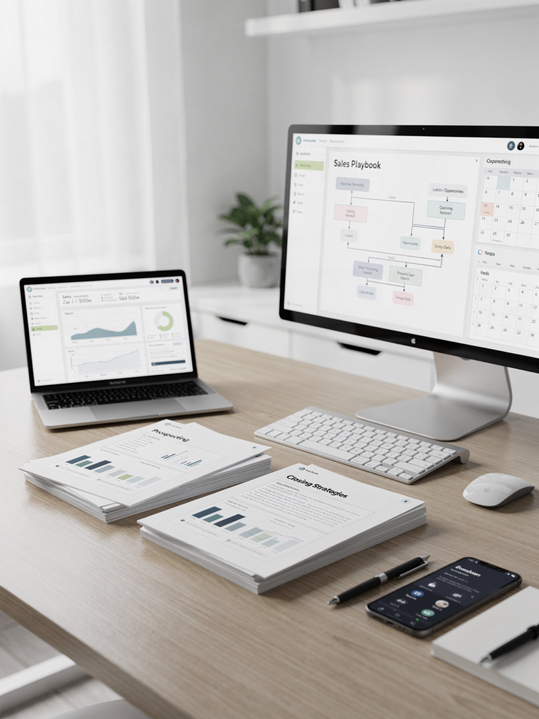 Documented frameworks for discovery, objections, follow-up, and closing — so reps aren’t guessing under pressure.
